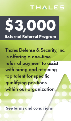 Thales Defense & Security, Inc. has earned the loyalty of our employees by providing a corporate culture fostered by excellence, respect, recognition, and continuous improvement. The foundation of our culture is the steadfast belief that we can achieve success for ourselves and our customers without compromising our commitment to integrity. We recognize that lives depend on what we do.